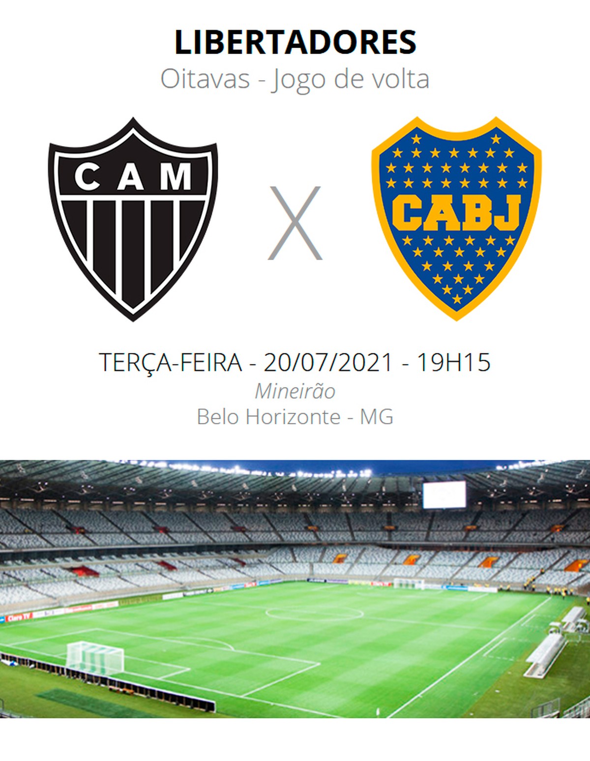 Atletico MG Boca Juniors of the July 20 2021 at 315 PM. Atletico Mineiro has won each of the previous 4 league games. Atletico MG vs Boca Juniors Prediction The Brazilians are on a six-game unbeaten streak and five of these were wins.